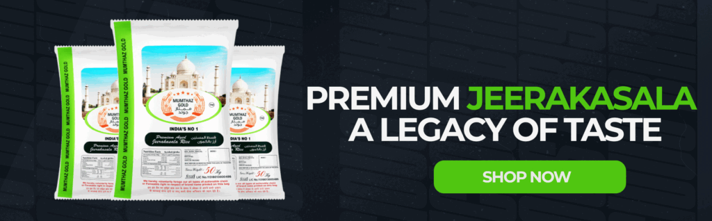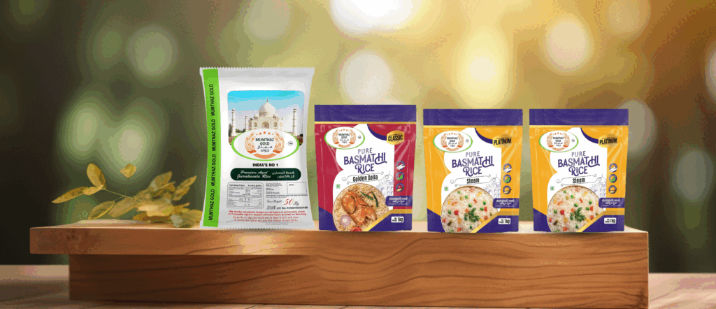 Mumthaz Gold rice is carefully selected, aged, and processed to preserve aroma, texture, and taste. Each variety — Jeerakasala, Golden Sella, Steam, and White Sella — is crafted for different styles of cooking.